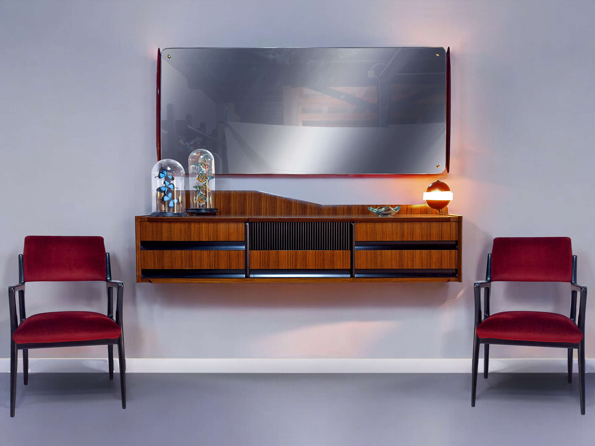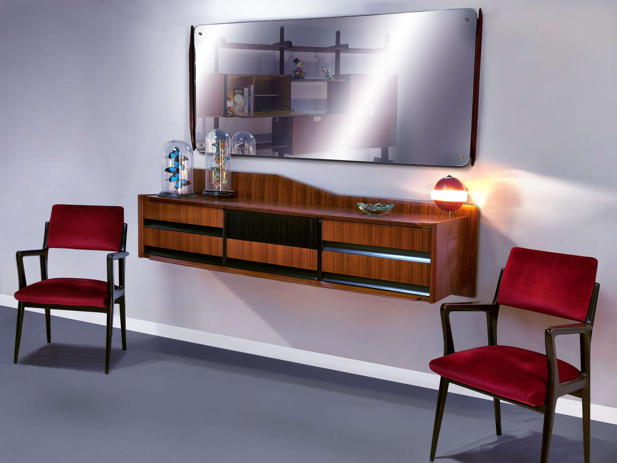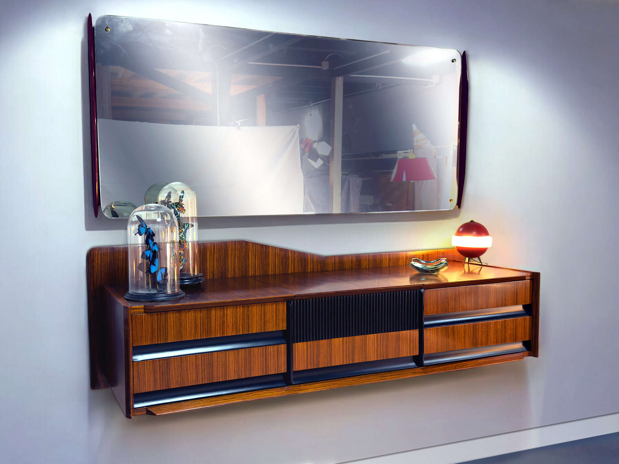 Cassettiera italiana in sospensione a muro con specchio disegnata da Vittorio Dassi, 1950s