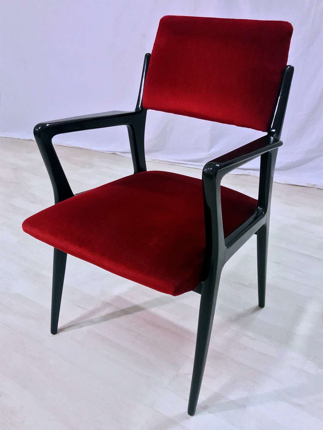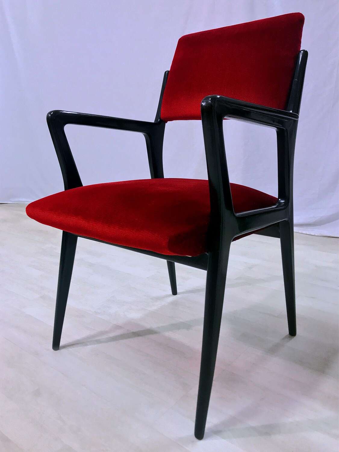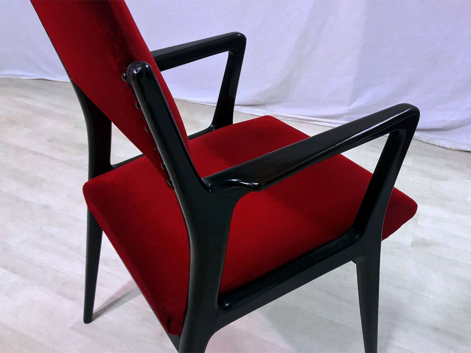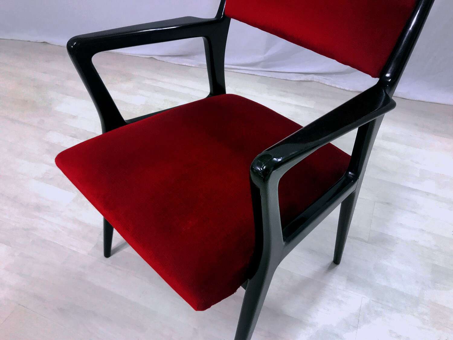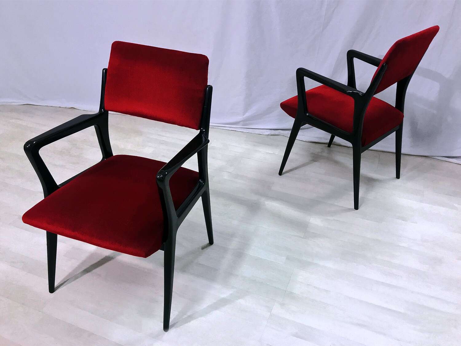 Coppia di sedie con braccioli italiane in velluto rosso, anni '50