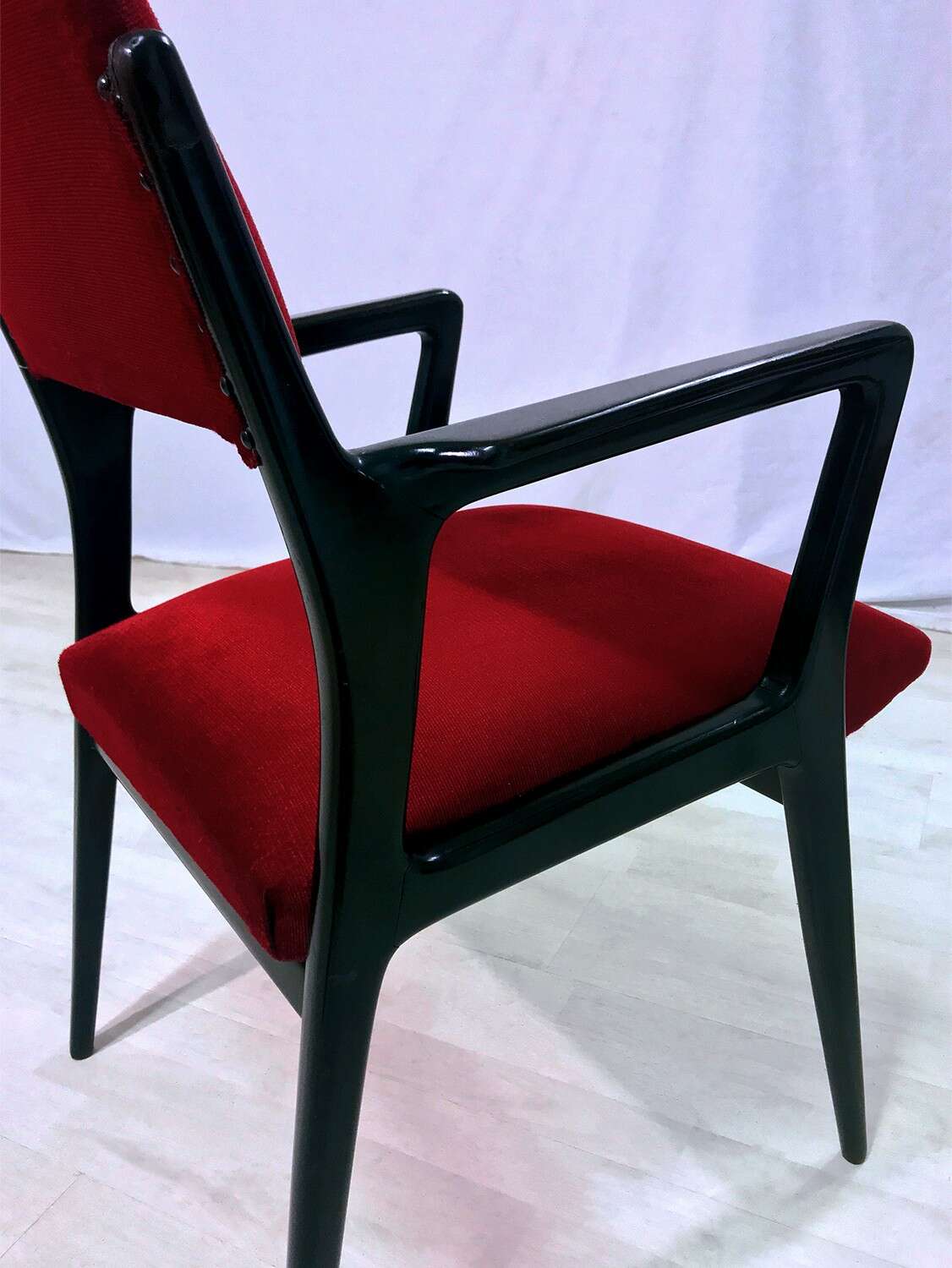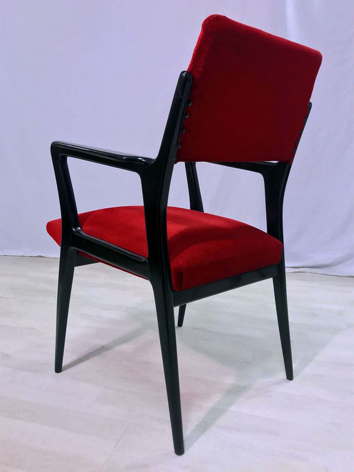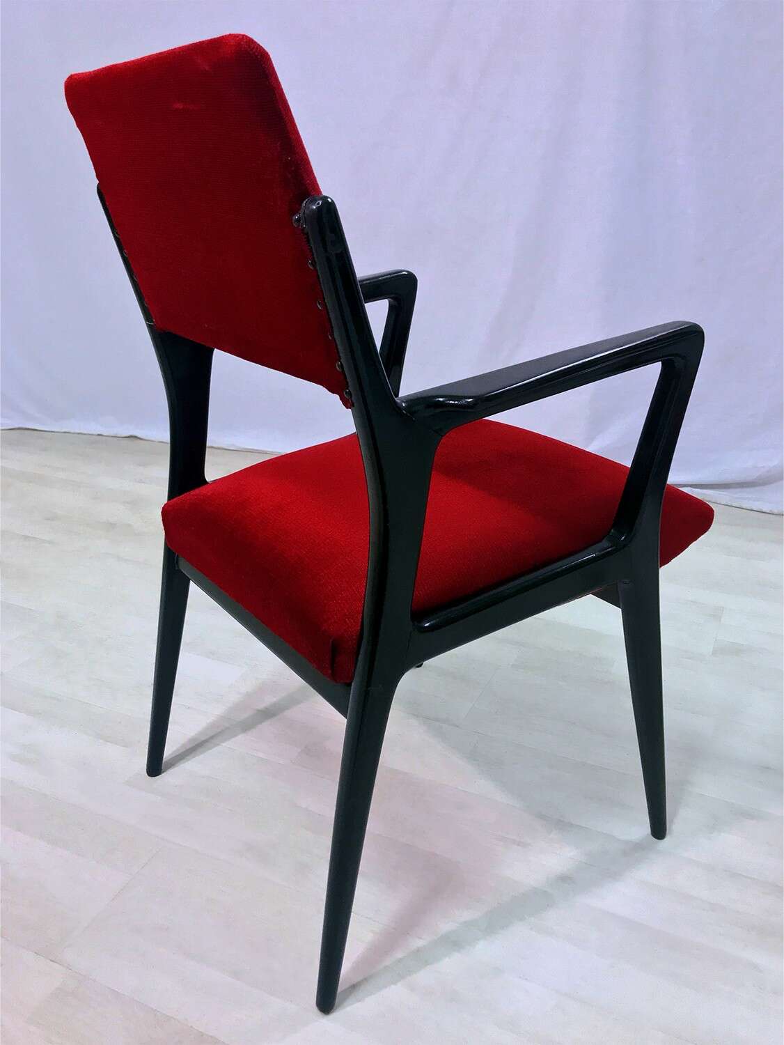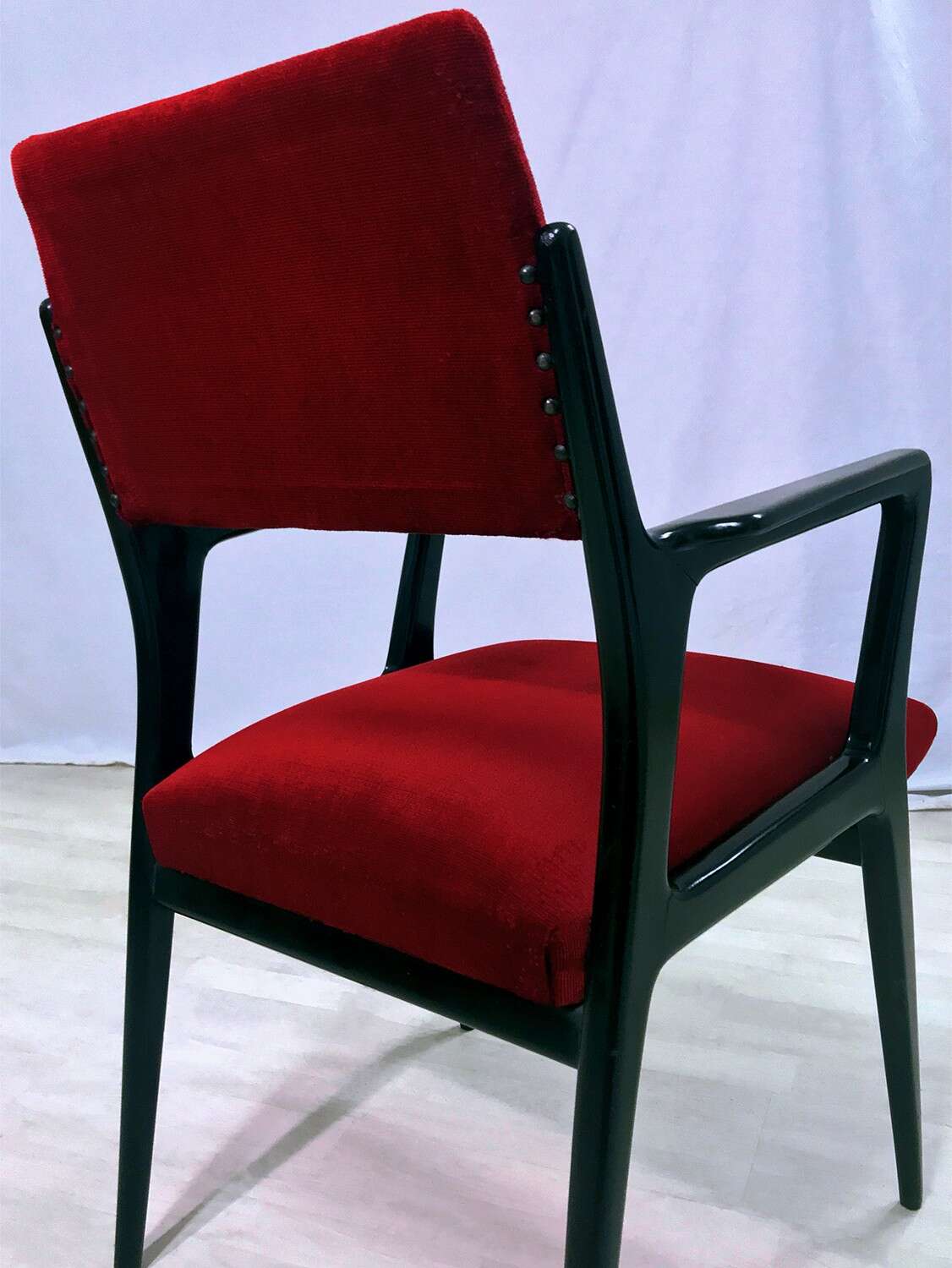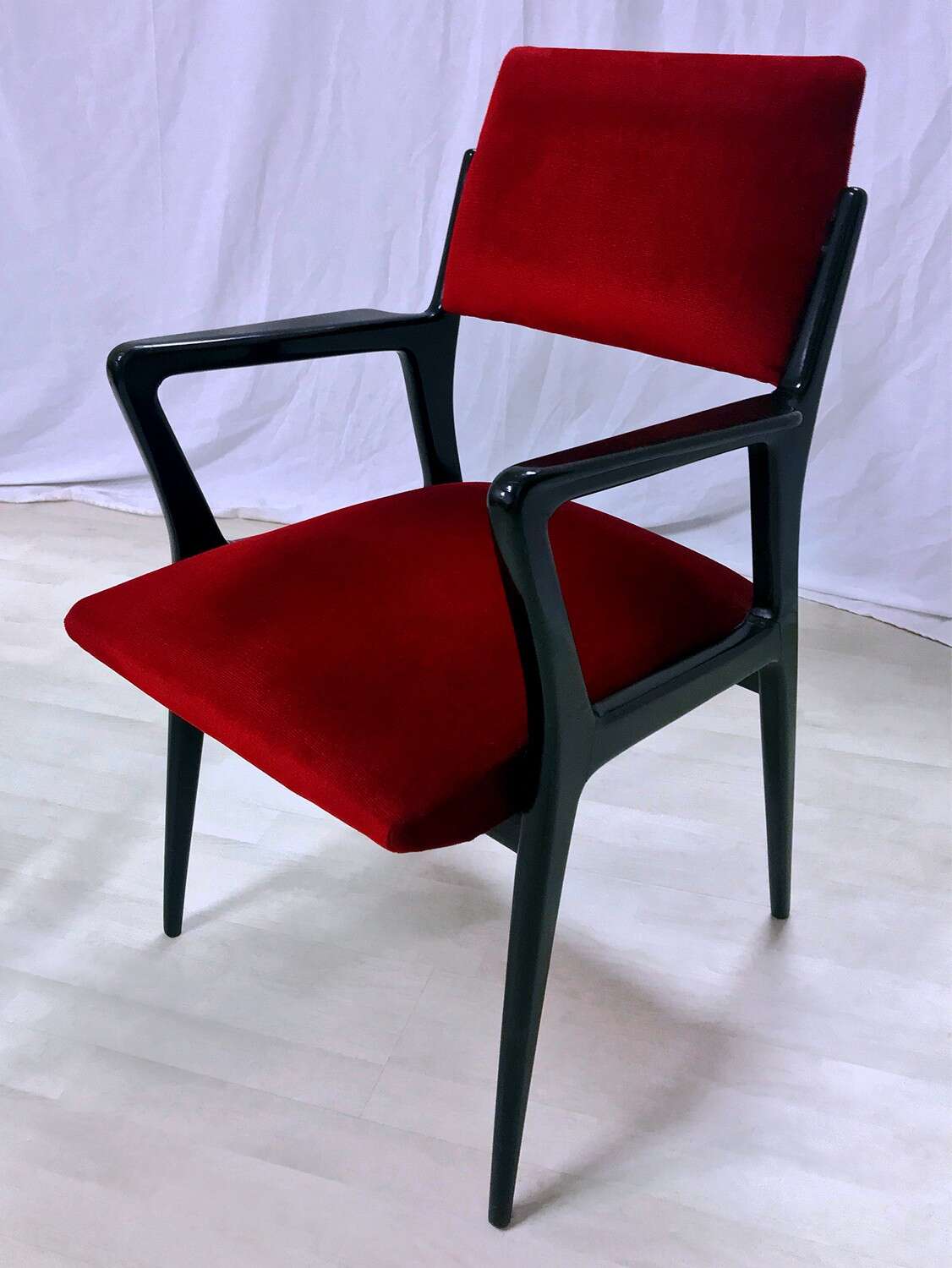 Coppia di sedie con braccioli italiane in velluto rosso, anni '50