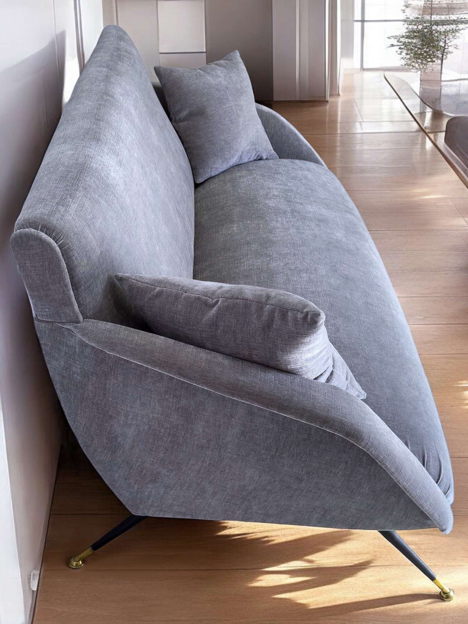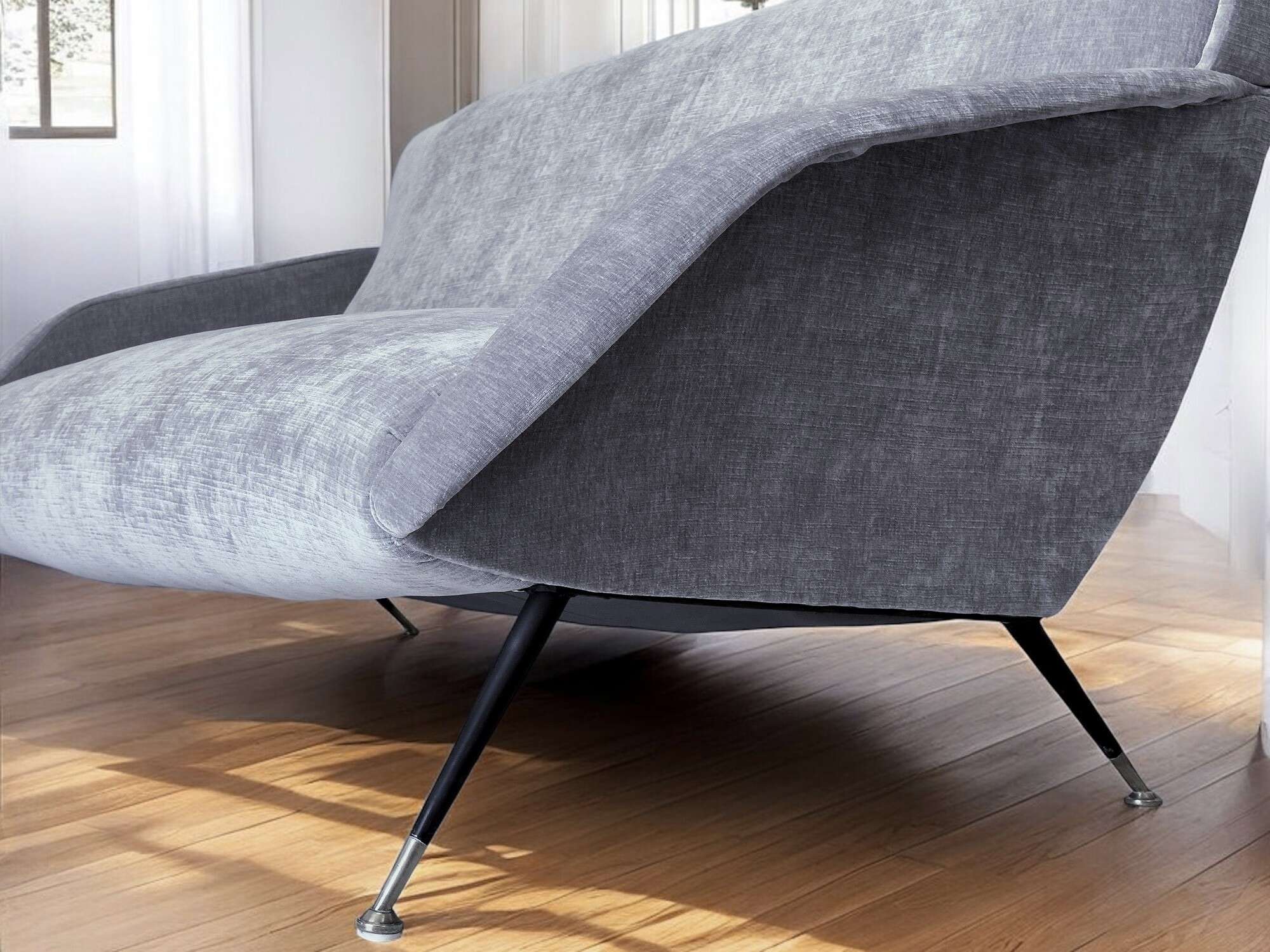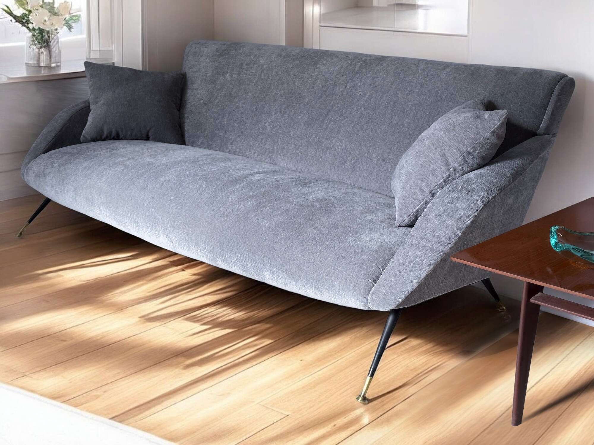Divano italiano a 3 posti in velluto grigio, stile Gigi Radice, anni '50