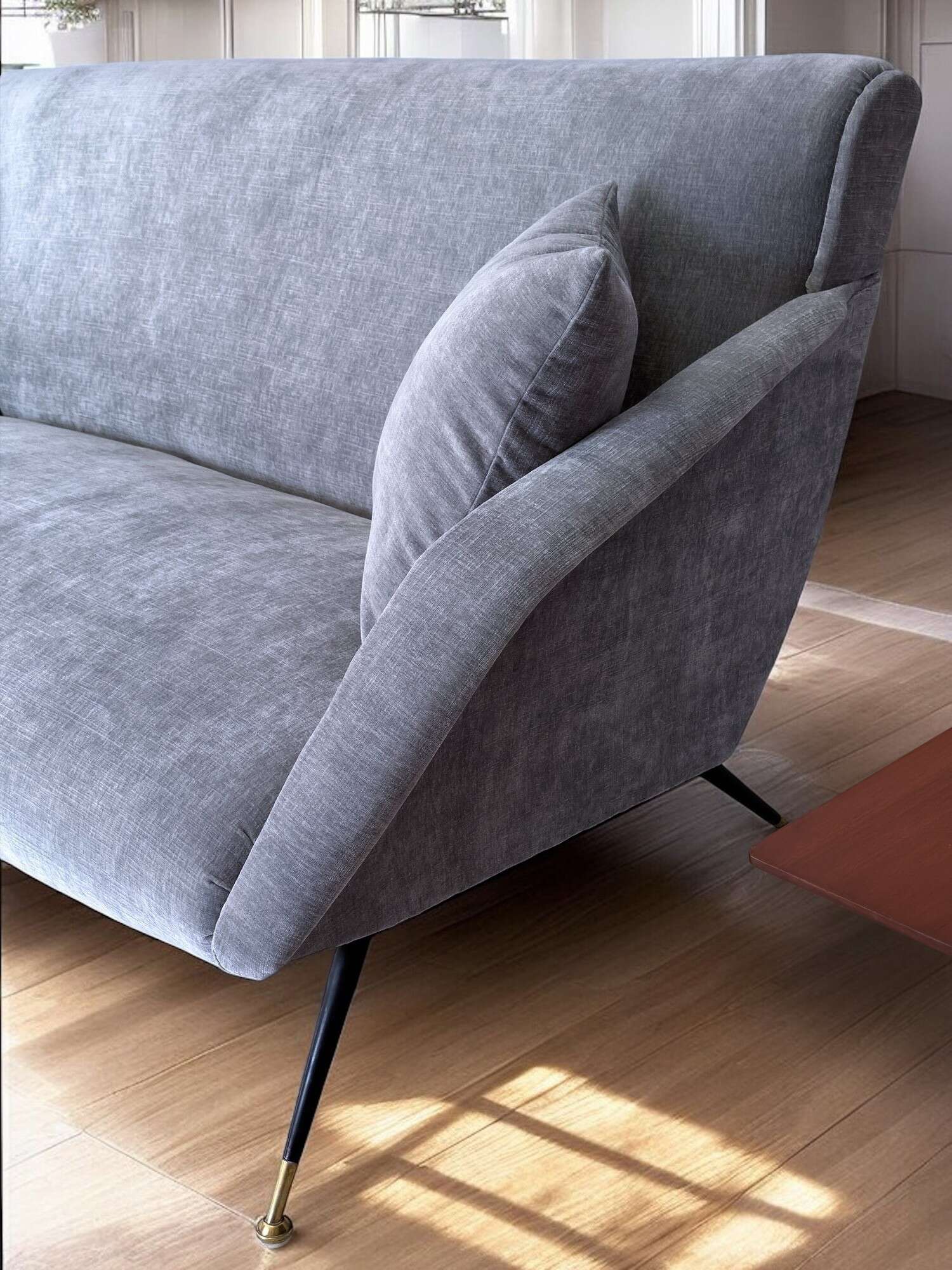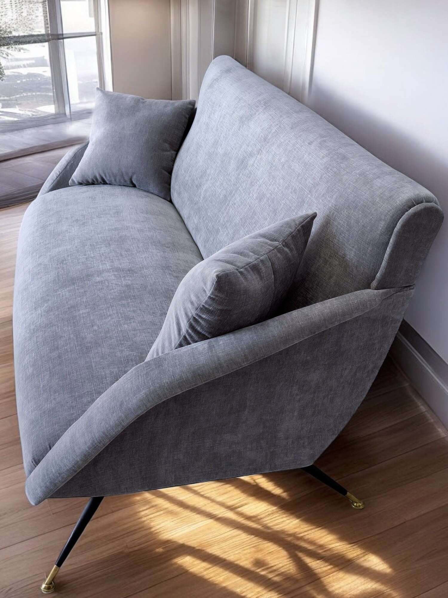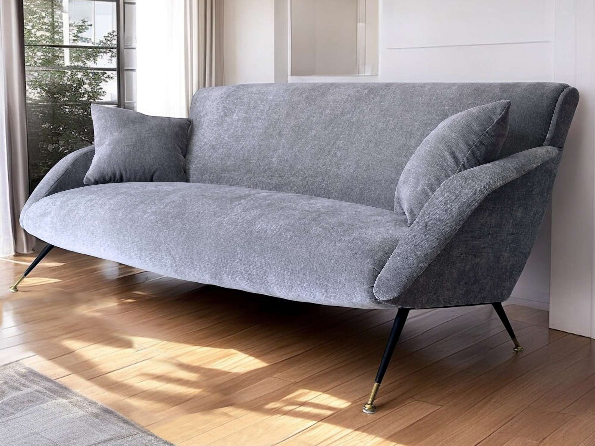 Divano italiano a 3 posti in velluto grigio, stile Gigi Radice, anni '50