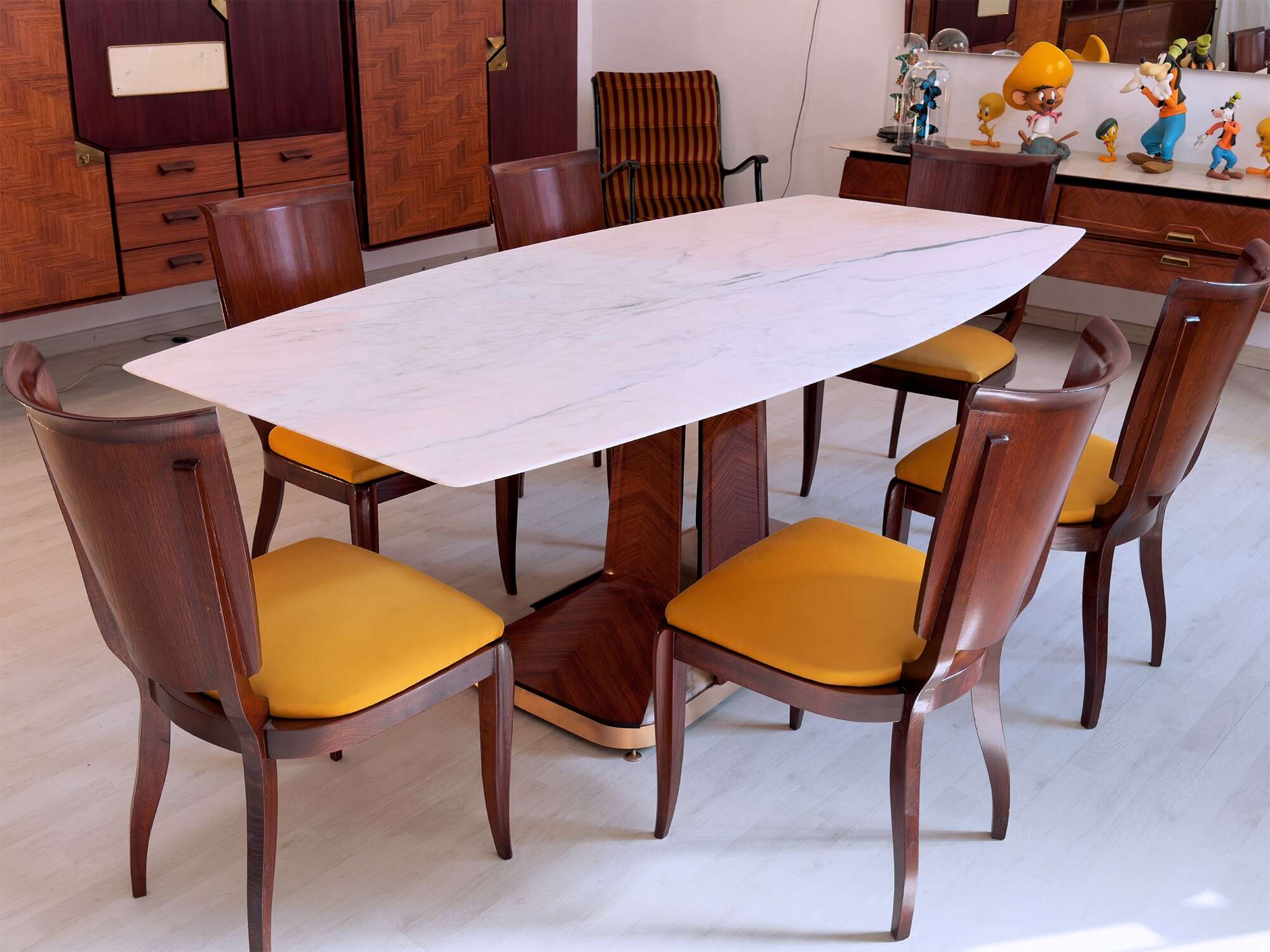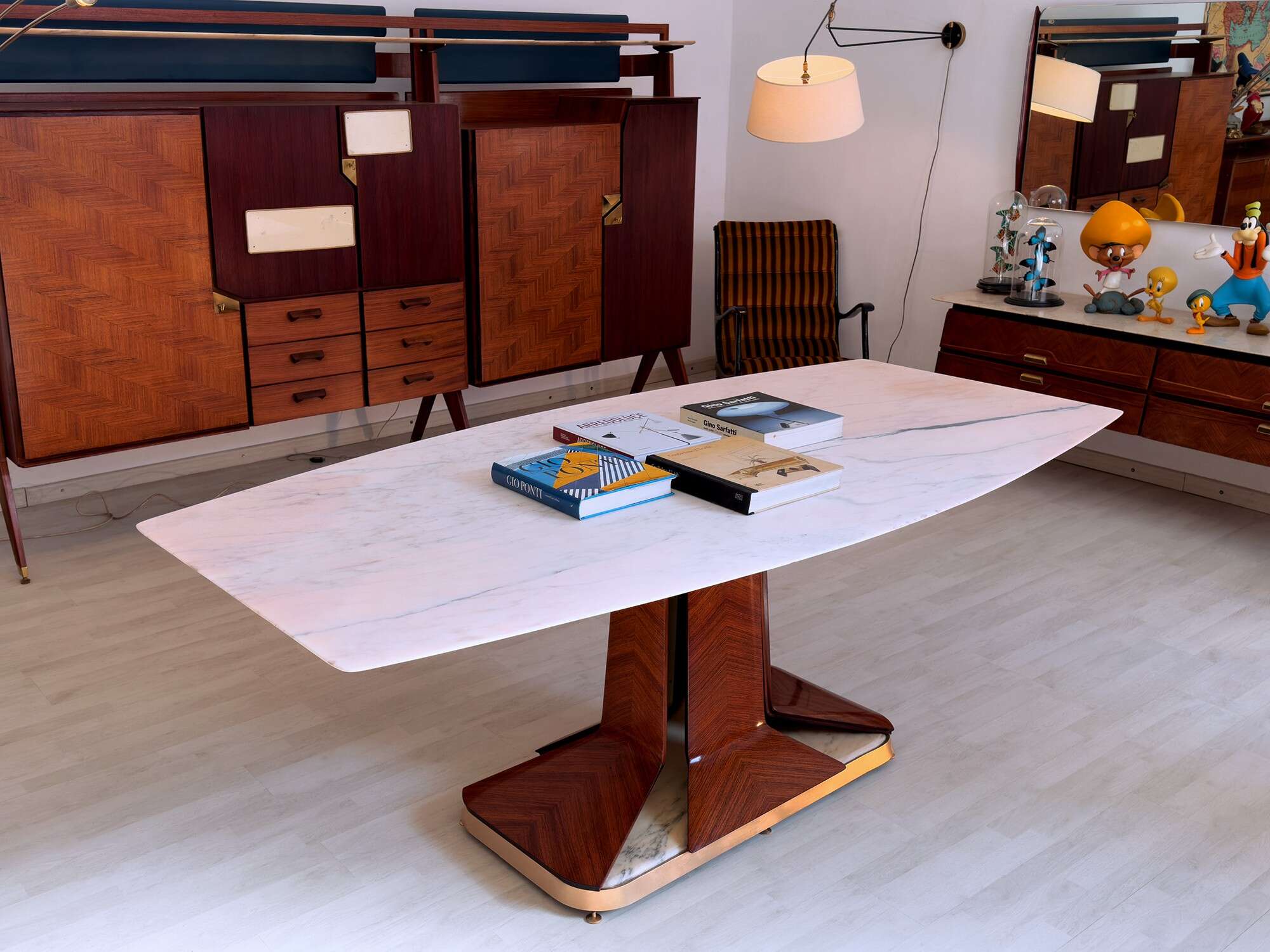 Tavolo da pranzo italiano di metà secolo con piano in marmo bianco di Carrara attribuito a Vittorio Dassi, anni '50